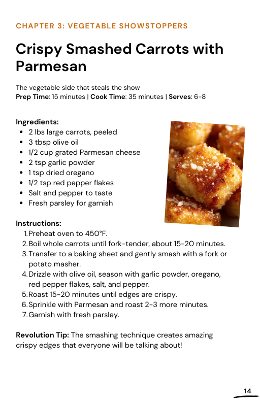🥕 Vegetable Showstoppers (4 recipes) Crispy Smashed Carrots with Parmesan (yes, carrots can be exciting)